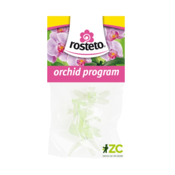 Dekorativní klipsy ve tvaru vážky slouží k uchycení květního stvolu orchidejí k opěrné tyčce.