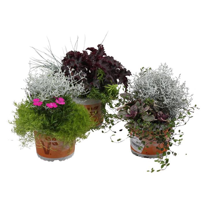 Atraktivní podzimní sesazovaný květináč, který je vhodná na slunná stanoviště až do mírného polostínu s mírně vlhkou půdou. Skvěle se hodí jako dekorace na terasy, hroby aj. ROSTLINY JSOU V MIXU PROVEDENÍ A VYBÍRÁME JE DLE SKLADOVÉ DOSTUPNOSTI.