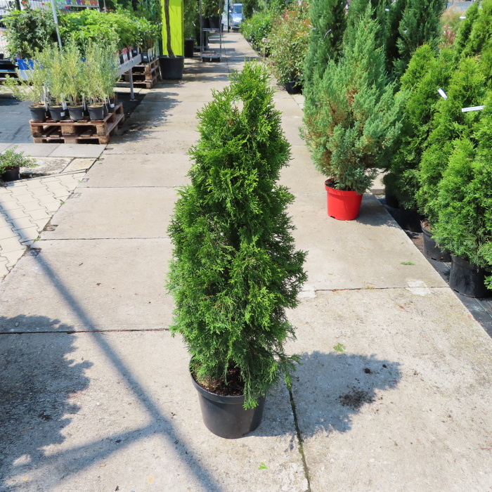 Nejoblíbenější jehličnan do živých plotů pro svou smaragdově zelenou barvu jehlic, kterou si drží i v zimních měsících. Roste kompaktně, sloupovitě a jehlanovitě. V dospělosti dorůstá do výšky 2-5m a šířky do 1,5m.