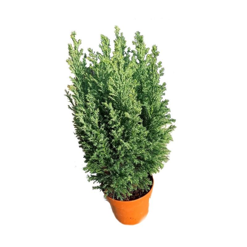 Kompaktně rostoucí cypřišek dorůstající výšky 2,5m. Jehlice jsou šupinovité v základu modrozelené, které od konce léta do zimy a na jaře zdobí krémové konce větviček.