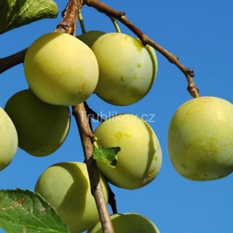 Středně raná odrůda. Plody dozrávají v druhé polovině srpna. Plod je středně veliký, téměř kulovitý. Slupka je žluto-zelená, matná. Dužnina je pevná, žluto-zelená, šťavnatá. Dobře se odděluje od pecky.