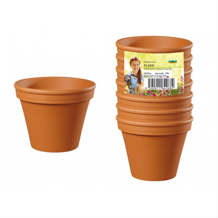 Malý keramický květník je vhodný na pěstování kaktusů a sukulentů. Je vyroben z jílu s vyšším obsahem železa, proto je jeho zabarvení červenější. Je mrazuvzdorný a jeho barva nebledne. Vnitřní průměr: 5 cm, vnější průměr: 6 cm, výška: 5 cm. V balení je 7 kusů.