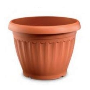 Plastový květináč s odtokovým otvorem.
