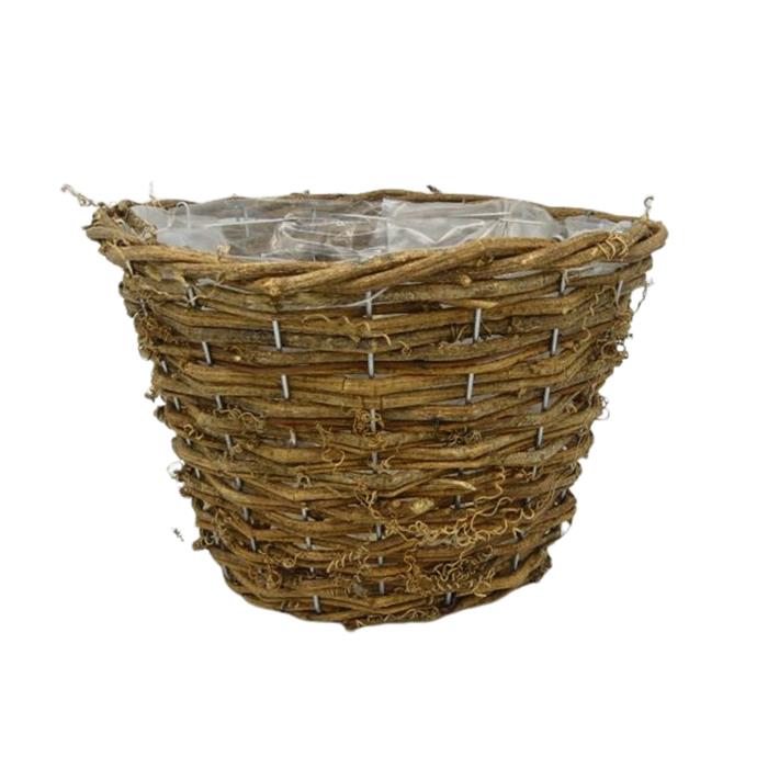 Obal na květináč kulatý proutěný s igelitem hnědý 20cm