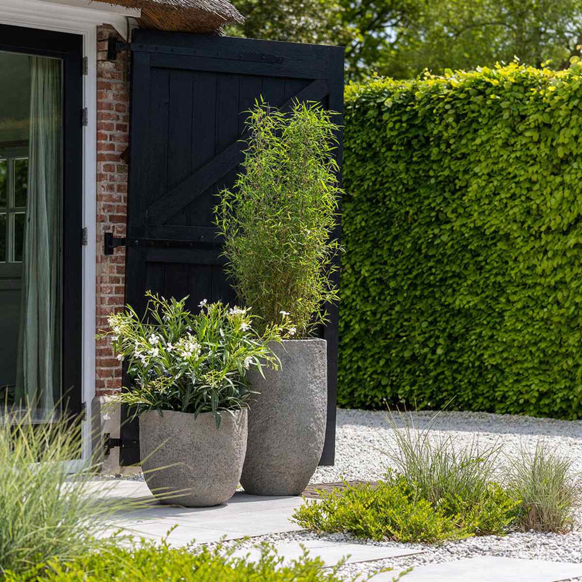 Krásný a praktický květináč, který vkusně doplní vaši terasu, zahradu, nebo vstup do domu. Materiál se skládá z kamene a ze skelných vláken. Díky tomu je tento materiál pevný a zároveň lehký. Výrobky mají snadnou údržbu a jsou vhodné do exteriéru, kde snáší všechny druhy povětrnostních podmínek.