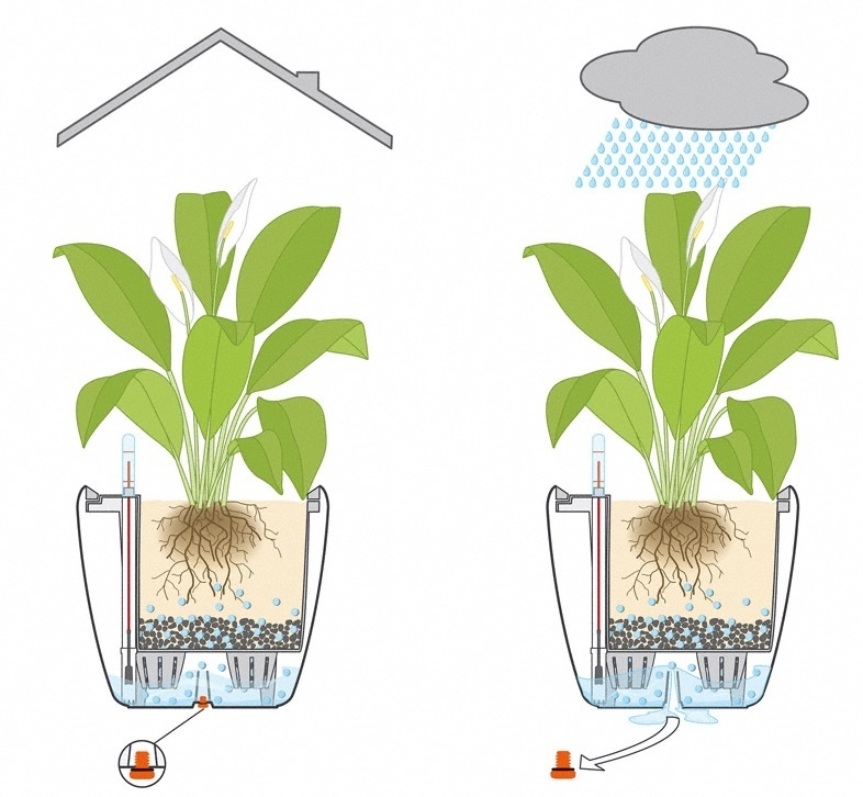 zapuštěná držadlo vložky odpovídá barvě obalu, což nejen užitečné, ale vylepšuje celkový vzhled květináče