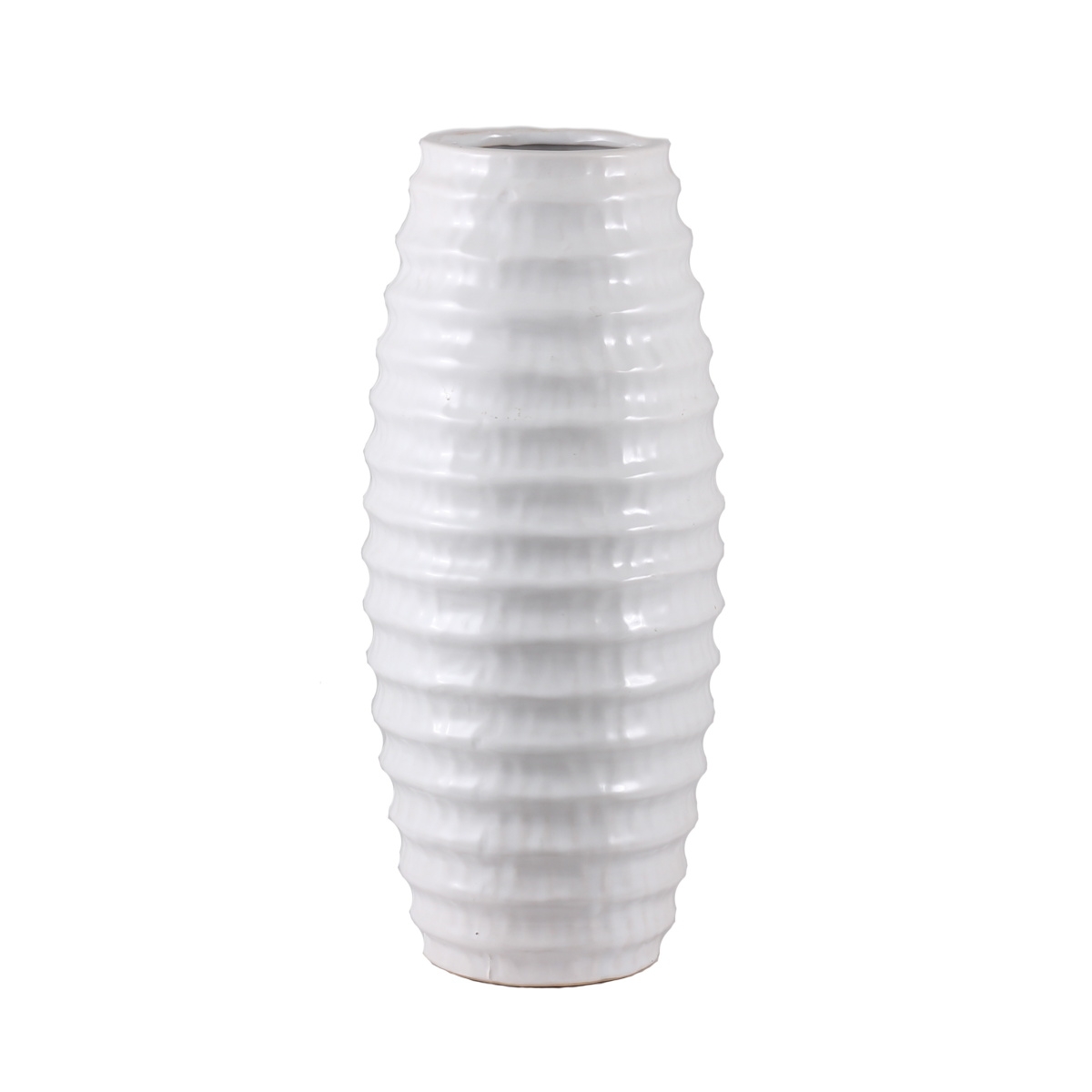 Stylová a moderní keramická váza s výraznou vroubkovanou strukturou zaujme na první pohled svým originálním designem. Její kónický tvar se směrem dolů zužuje, což působí elegantně a současně stabilně. Skvěle se hodí jako dekorace do moderních i klasických interiérů, ať už ji využijete pro řezané květiny, sušiny nebo jen jako samostatný dekorační prvek.