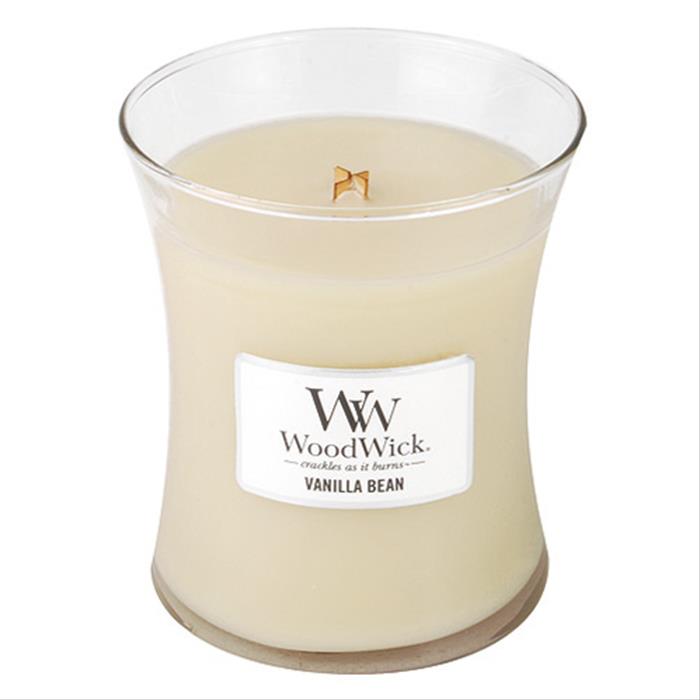 Luxusně vonící svíčka ve skleněné váze s dřevěným víčkem značky WoodWick.Posaďte se a odpočiňte si s teplou, přírodní vůní čisté vanilky. Designově propracovaná svíčka ve skleněné váze z ručně foukaného čirého skla, dekorována mohutným dřevěným víčkem s pryží po obvodu, která zabraňuje vyprchávání vůně. Unikátní dřevěný knot zajistí efekt věrně praskajícího ohně v krbu a extra zářivý plamen.Tato neodolatelná svíčka nabízí až 60 hodin skutečného potěšení z vůně.