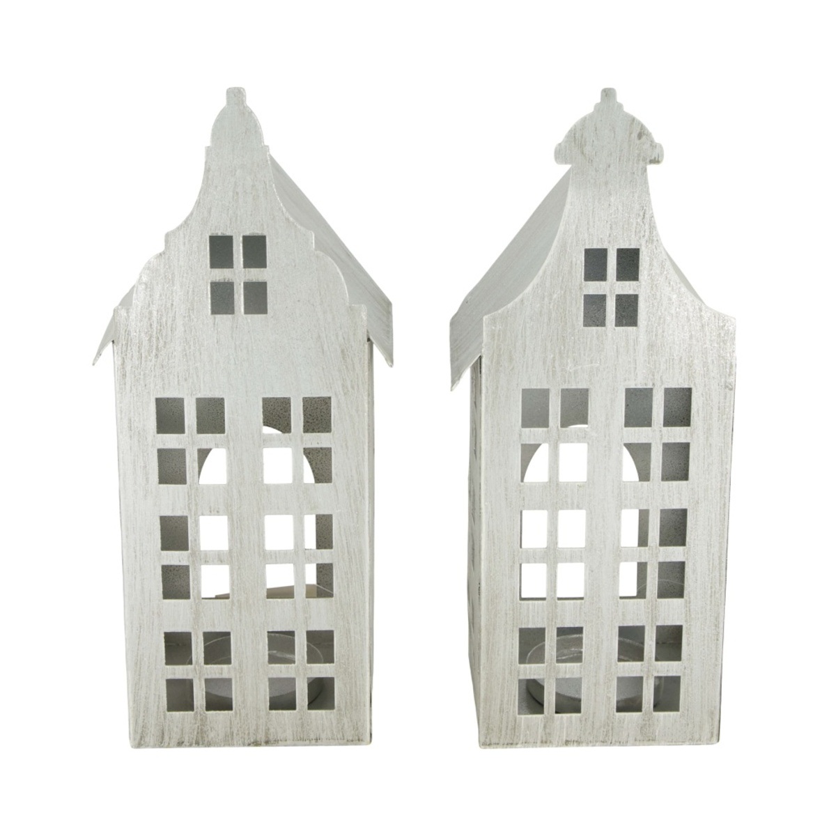 Svícen na čajovku kovková dům stříbrný mix 28cm
