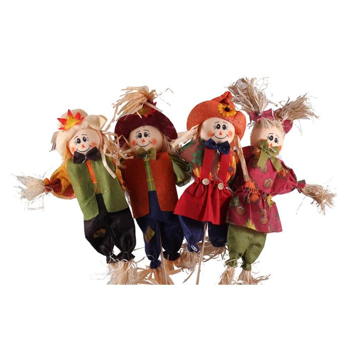 Veselý strašák na zápichu je perfektní dekorací pro podzimní období, sklizeň nebo Halloween. Vyrobený z látky a přírodního lýka, působí rustikálně a přirozeně. Zápich snadno umístíte do květináče, truhlíku, věnce nebo dekorace – během chvilky tak vykouzlíte útulnou podzimní atmosféru. Strašák v mixu provedení. Pokud si přejete konkrétní variantu, napište ji do poznámky, pokusíme se vyhovět. V případě nedostupnosti bude odeslán náhodný kus.