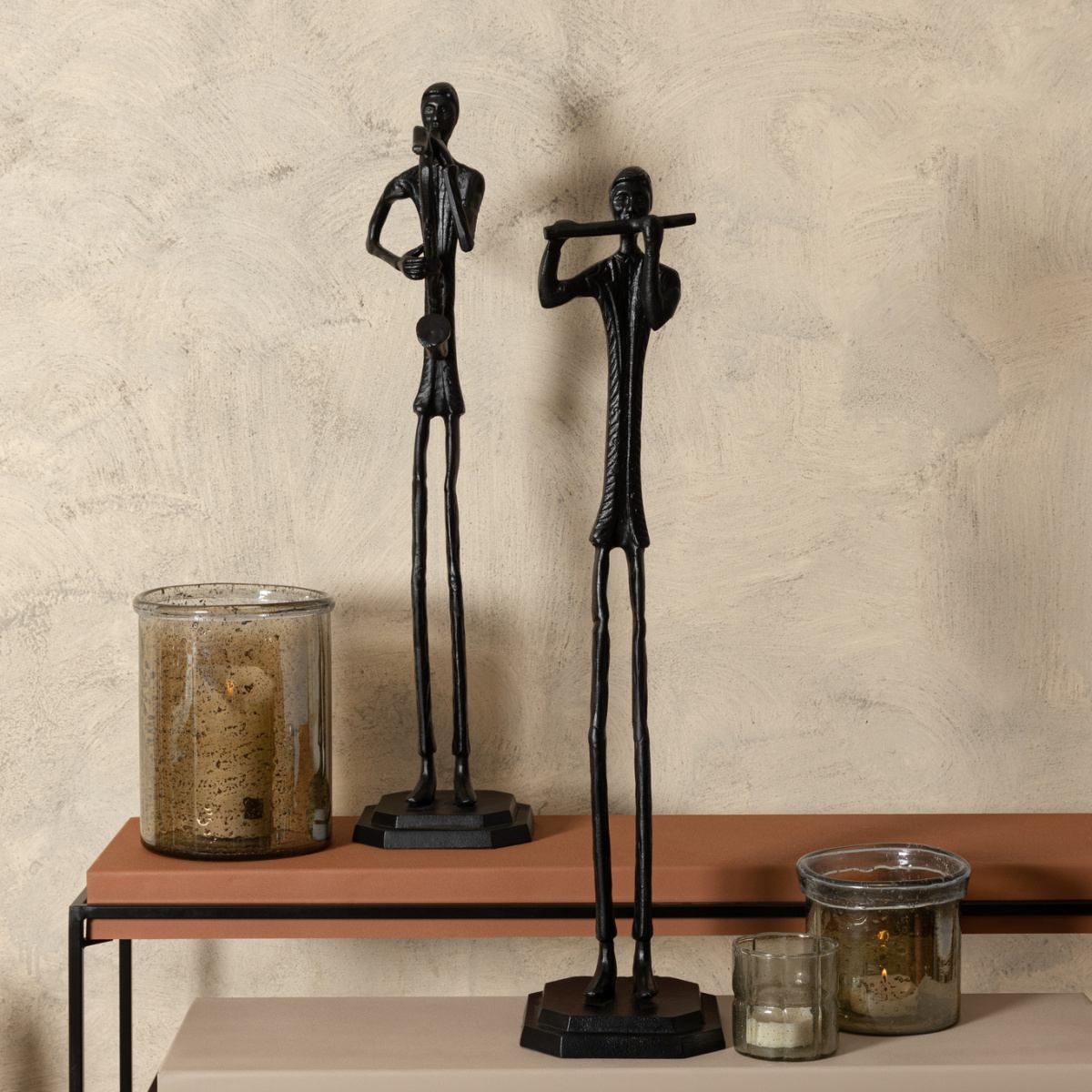 Dekorativní socha KALI představuje elegantní a moderní ztvárnění muže s flétnou. Vyrobena z kvalitního hliníku, působí lehce a zároveň stabilně, a díky výšce 70 cm se stává výrazným solitérem, který zaujme v obývacím pokoji, hale, kanceláři nebo galerii.
