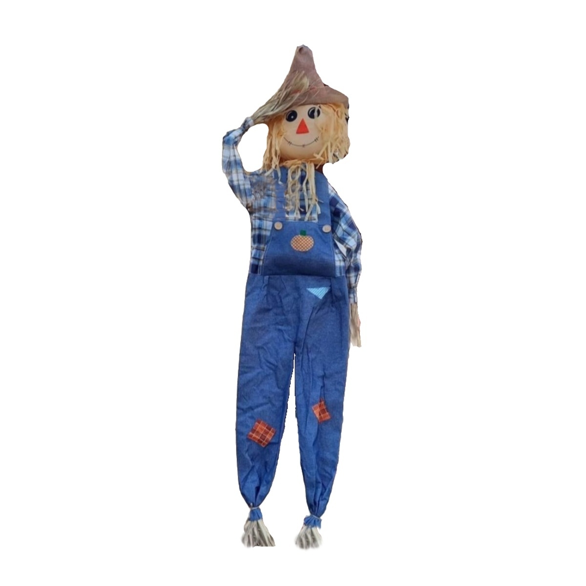 Veselý závěsný strašák je skvělou dekorací pro podzimní, halloweenskou nebo zahradní výzdobu. Díky lehké konstrukci a textilnímu provedení se krásně pohybuje ve větru a působí živým dojmem.
