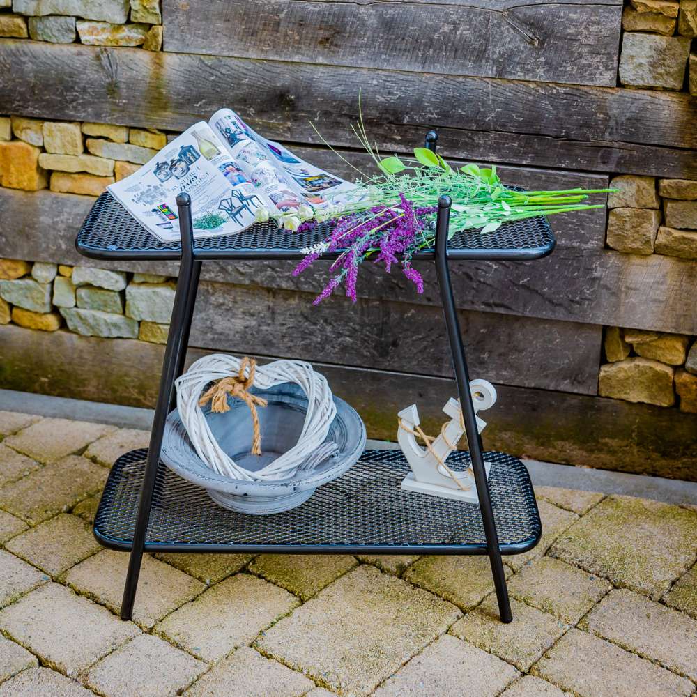Univerzální kovový stojan či stolek.Úprava materiálu: před lakováním povrchu probíhá tryskání ocelových broků a automatické odmaštění/fosfátování, poté lakování v práškové lakovně a následně vypalování při cca 200 °C po dobu cca 20 minut. Výsledkem je hladká, antikorozní barva a celoroční užívání na zahradě.