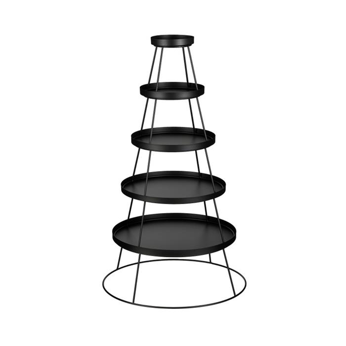Elegantní a praktický kulatý kovový stojan s pěti patry je ideální volbou pro prezentaci zboží nebo jako dekoraci. Díky modernímu a vzdušnému designu se skvěle hodí do obchodů, svatby aj.