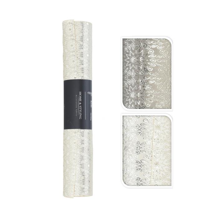 Elegantní běhoun na stůl, který rozzáří každé stolování. Kombinace světlé barvy s jemným ornamentálním vzorem působí slavnostně a zároveň decentně, takže se hodí jak pro běžné stolování, tak i pro sváteční příležitosti. Běhoun v mixu provedení. Pokud si přejete konkrétní variantu, napište ji do poznámky, pokusíme se vyhovět. V případě nedostupnosti bude odeslán náhodný kus.