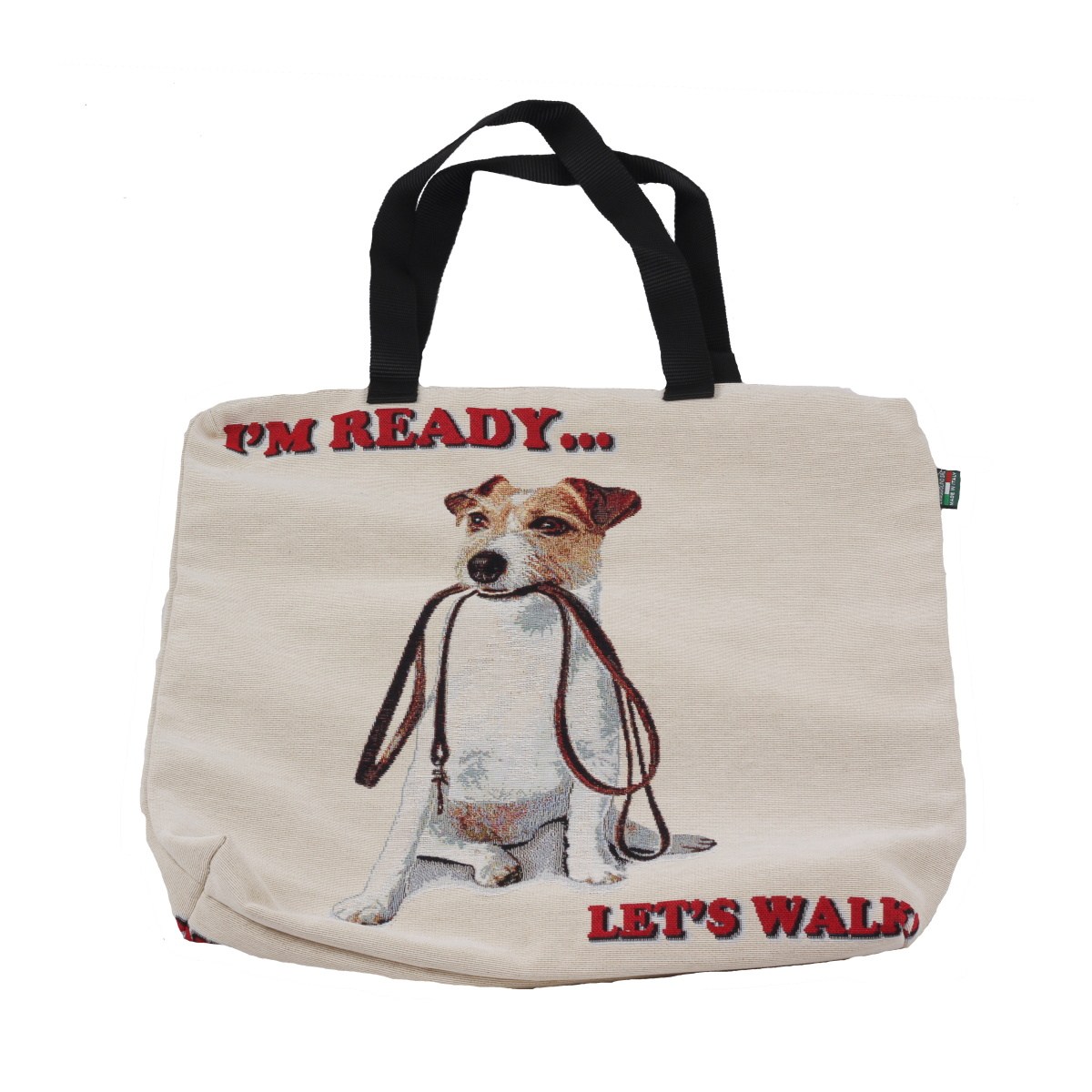 Stylová látková taška s vtipným motivem psa plemene Jack Russell teriér potěší každého pejskaře. Roztomilý pejsek s vodítkem v tlamě a nápisem „I’m ready… let’s walk!“ vás rozesměje i inspiruje ke každodenním procházkám. Díky pevnému materiálu a praktickému zapínání na zip je taška ideální na nákupy, výlety i běžné nošení.