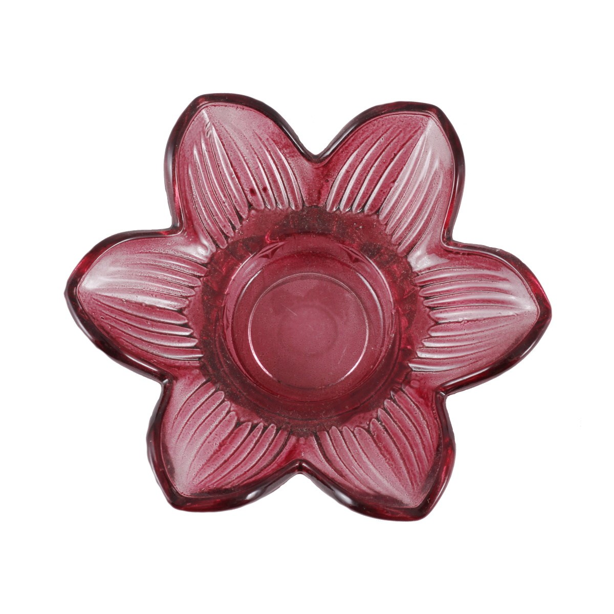 Svícen na čajovku sklěný CLARA tm.růžový květ 12cm