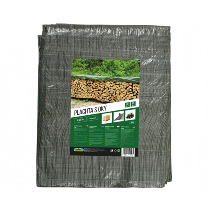Univerzální zakrývací, izolační a stínící plachta s oky s vysokou odolností vhodná pro celoroční použití v domácnosti, na zahradě, stavbě a při rekreačních a sportovních činnostech. Chrání proti vodě a vlhkosti, prachu, mastnotě, slunečnímu záření a větru. Slouží jako ochrana a krytí stavebního materiálu, stavební mechanizace, nářadí, k zakrytí auta, dřeva, záhonu, bazénu. Používá se na dočasné zakrytí střechy při realizaci krovů či děravé střechy. Kovová oka jsou umístěna po celém obvodu, pomocí těchto ok je plachta dobře uchytitelná. Barva: zelená. Gramáž: 55 g/m2. Délka: 5 m, výška: 4 m.