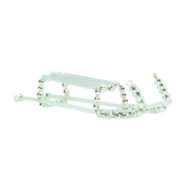 Ručně vyráběná perličková ozdoba ve tvaru sáněk v elegantní stříbrné barvě je kouzelným doplňkem vánoční výzdoby. Tento jemný kousek o délce 8,5 cm vznikl v české dílně tradičním způsobem – z drobných skleněných perliček navlékaných s pečlivostí a láskou k řemeslu. Skvěle vynikne na stromku, ve věnci nebo jako součást slavnostní tabule. Česká kvalita, která potěší.