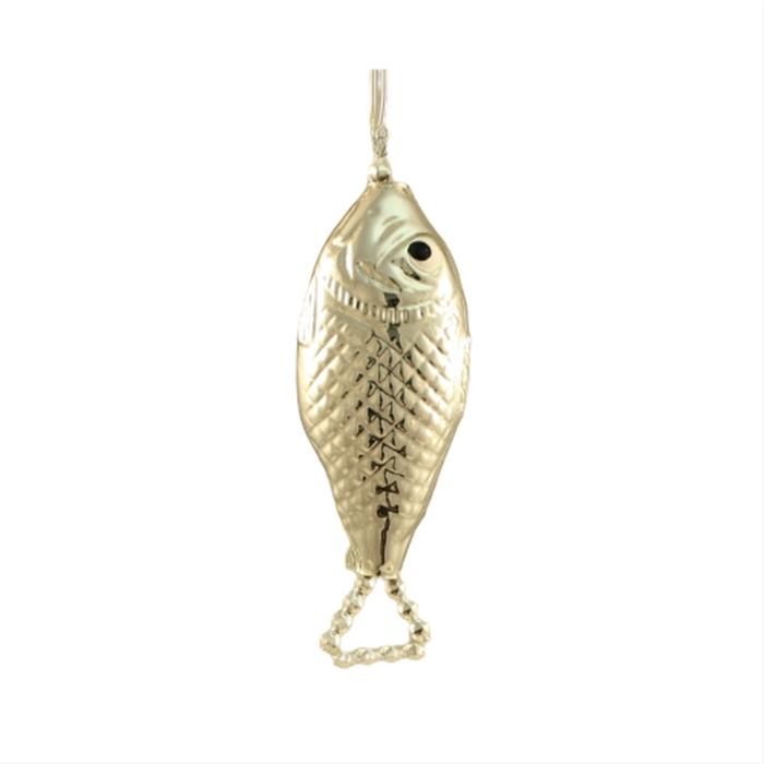 Nádherná vánoční ozdoba ve tvaru kapra, vyrobená z jemného skla a zdobená drobnými perličkami, které jí dodávají jedinečný třpytivý efekt. S velikostí 9 cm je ideální na vánoční stromeček, věnce nebo jiné dekorace.