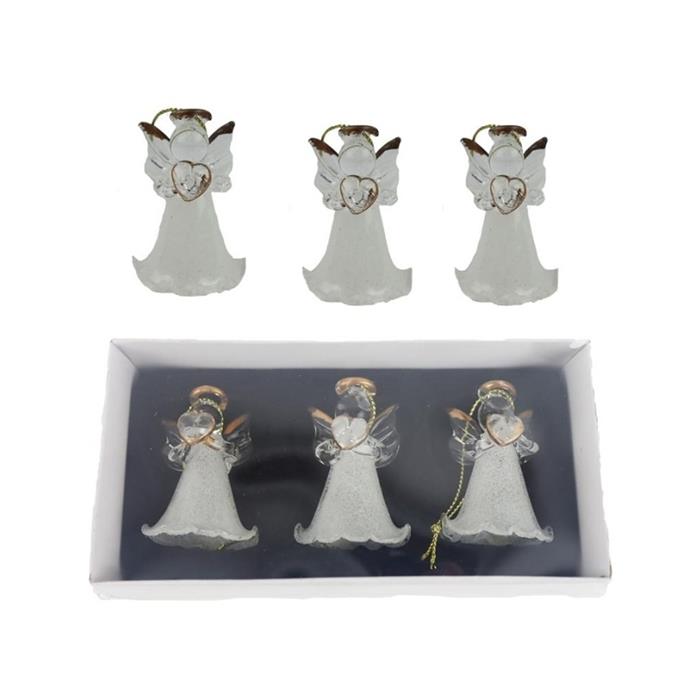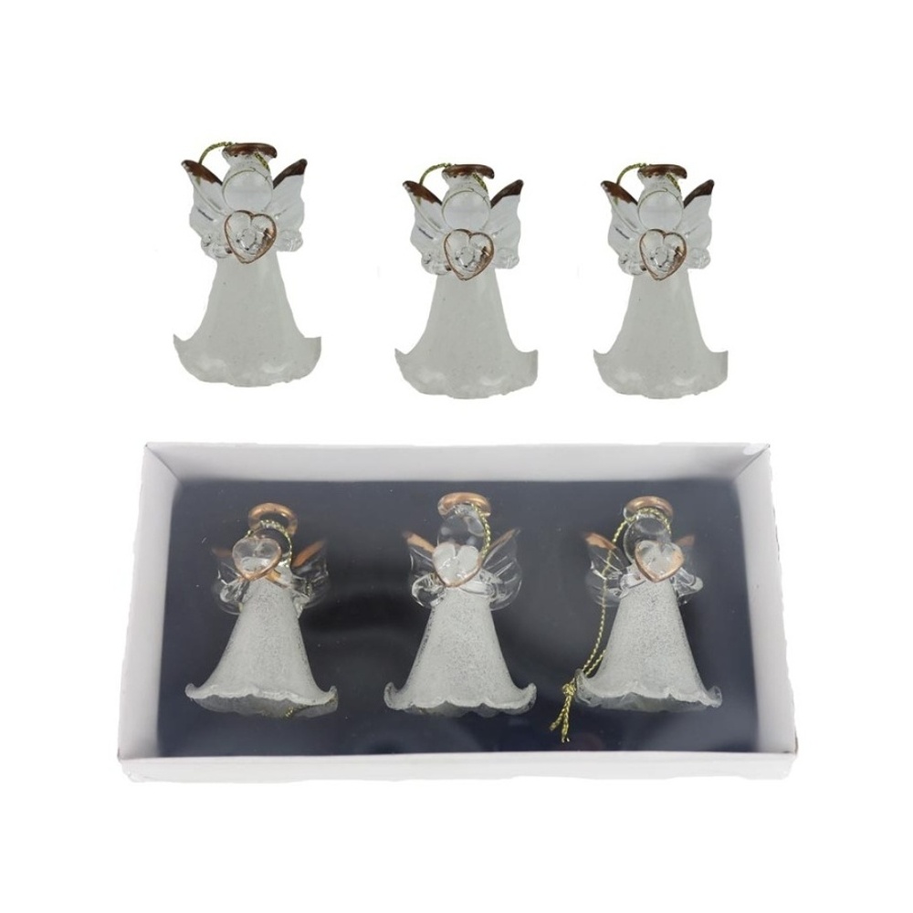 Sada ozdob skleněných andělů se srdcem zlato-čirý 3ks