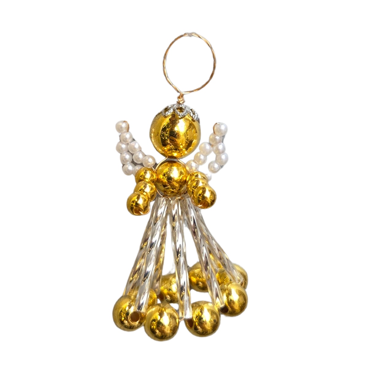 Korálková ozdoba anděla 3D bílo-zlatá 5cm