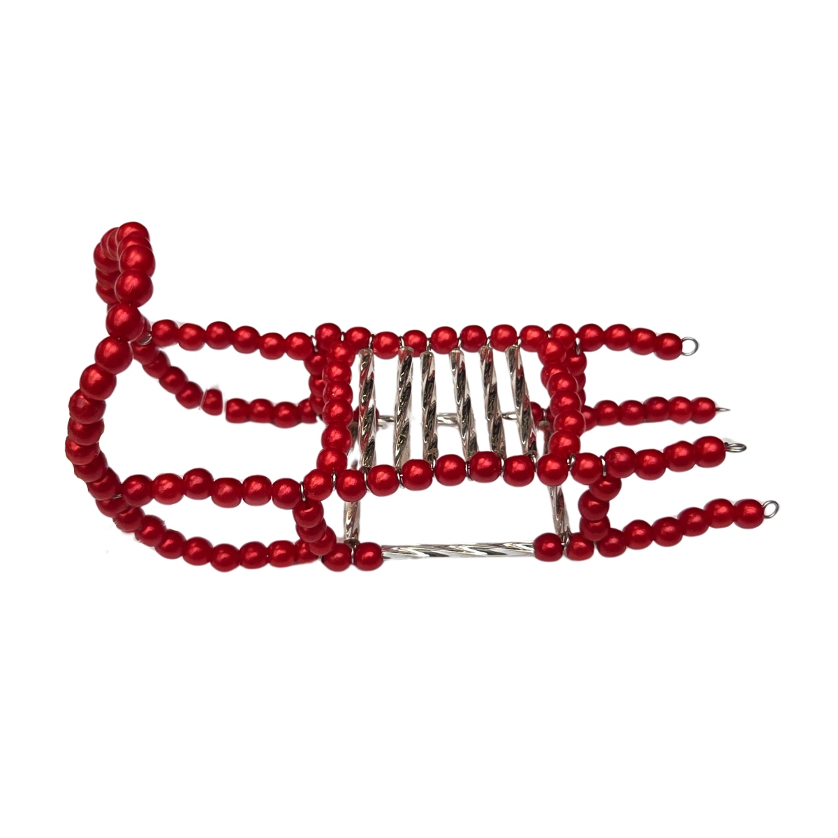 Korálková ozdoba sáněk stříbrno-červené 9cm