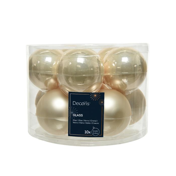 Elegantní skleněné ozdoby v perleťové barvě v kombinaci lesklého a matného provedení dodají vašemu vánočnímu stromku jemný a luxusní vzhled. Ideální velikost pro menší stromečky, věnce či stolní aranžmá.