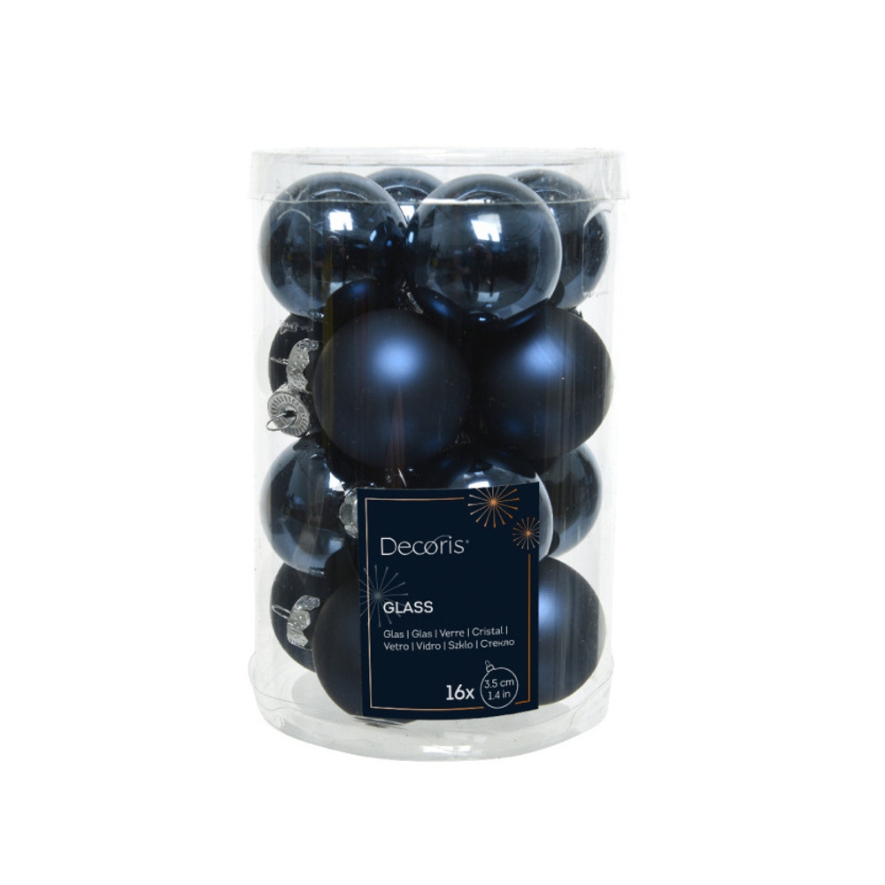 Sada skleněných ozdob tm.modrá 3,5cm/16ks