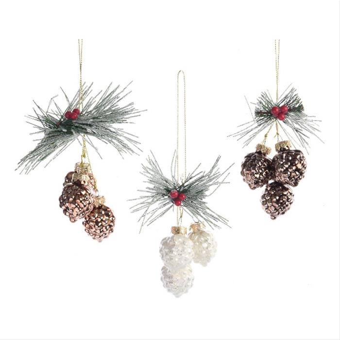 Ozdoba šišky s jehličím ve 3 barevných variantách. Pokud máte zájem o konkrétní variantu napište ji do poznámky, o její dostupnosti budete informováni. V opačném případě Vám bude odeslán náhodný kus.