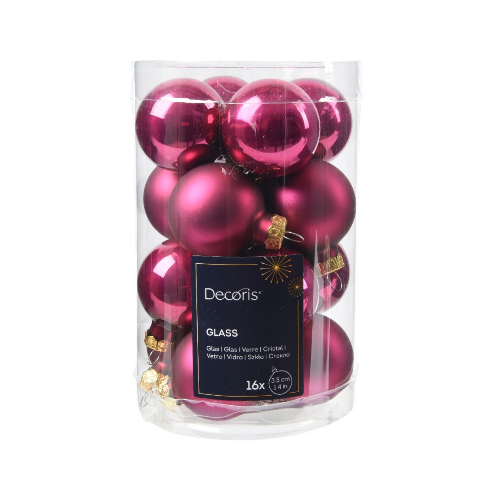 Popis produktu Sada skleněných ozdob červeno-fialová 3,5cm/16ks