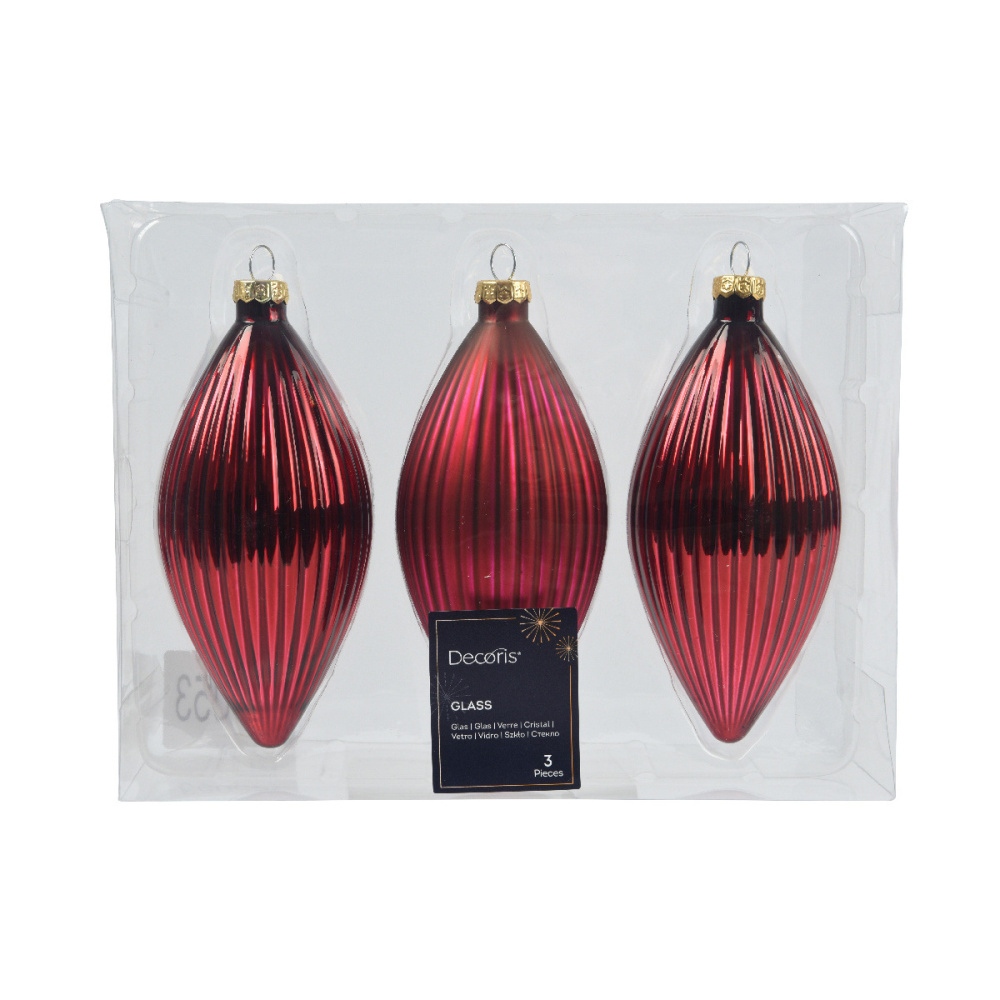Sada skleněných vánočních ozdob pro dekoraci interiéru.