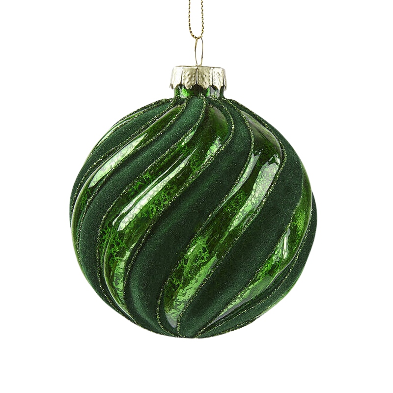 Tato skleněná koule o průměru 8 cm přináší dokonalou kombinaci klasiky a elegance. Lesklý tmavě zelený povrch působí hluboce a luxusně, zatímco jemné glitrové detaily dodávají ozdobě slavnostní jiskru.