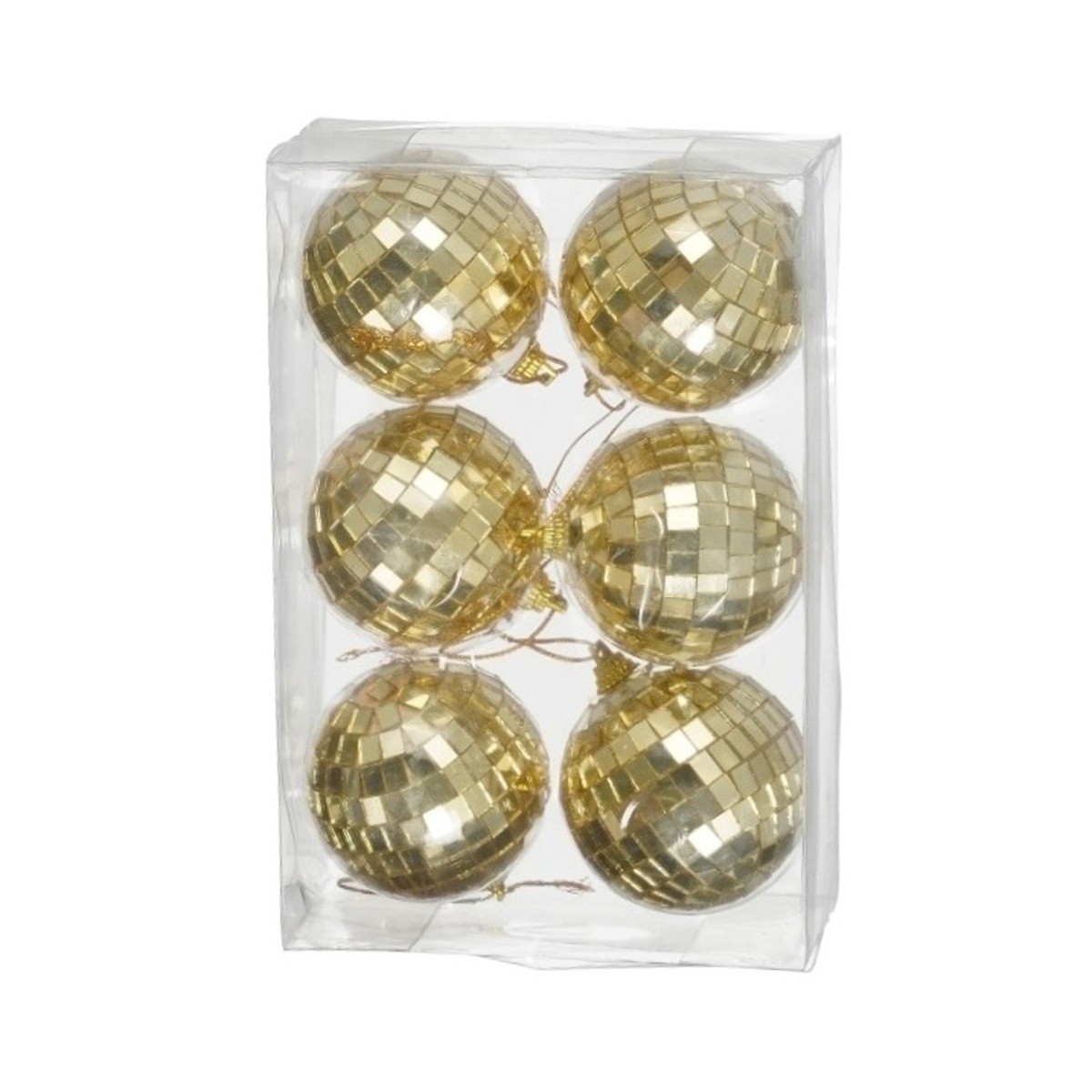 Sada stylových zrcadlových koulí s průměrem 6 cm ve zlaté barvě. Ideální doplněk pro vánoční stromky, oslavy nebo jako výrazný dekorativní prvek do interiéru. Skleněné zrcadlové plošky krásně odrážejí světlo a vytvářejí jedinečnou atmosféru.