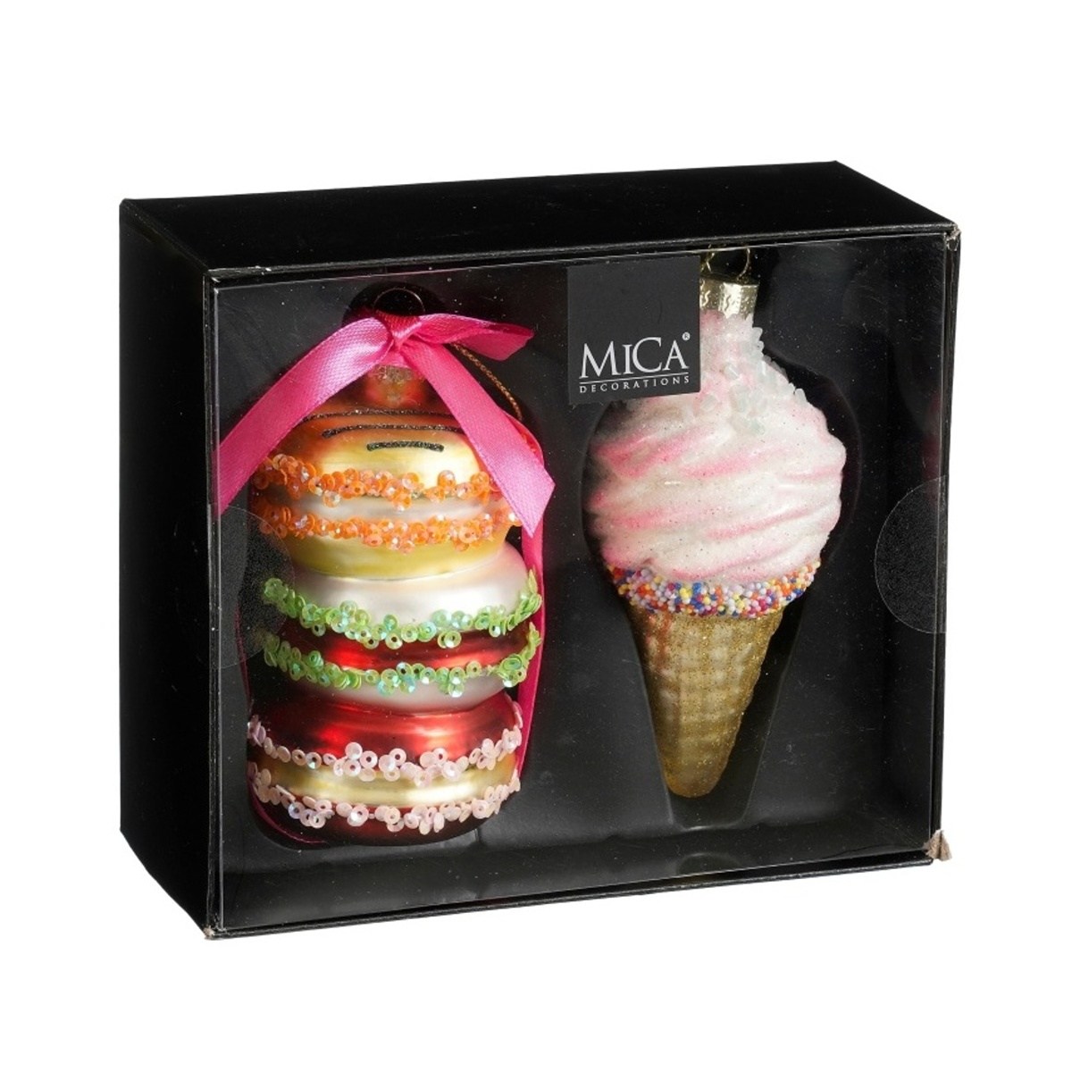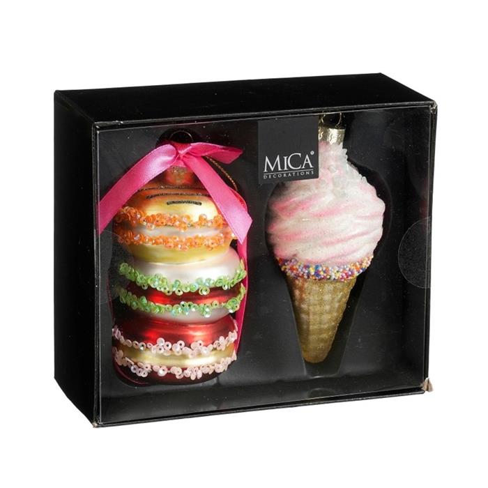 Sada skleněných ozdob - makronka a zmrzlina 2ks