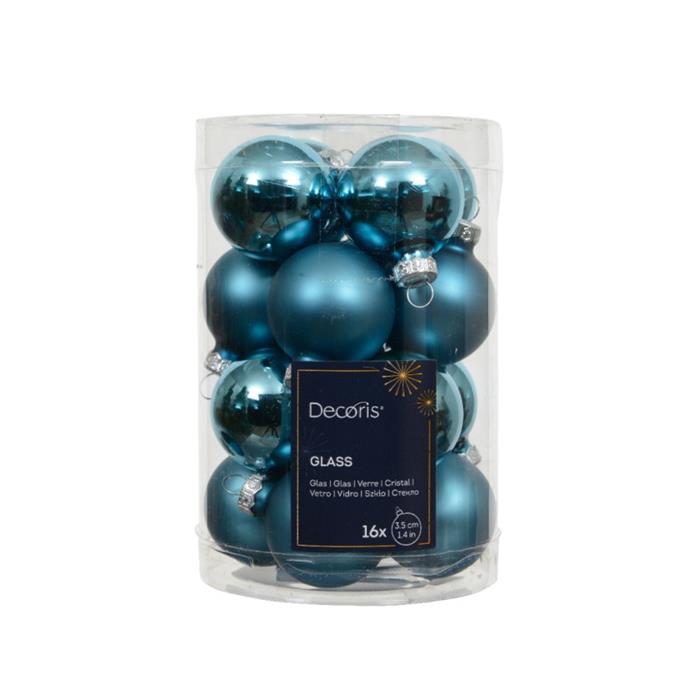Sada skleněných ozdob tyrkysová 3,5cm/16ks