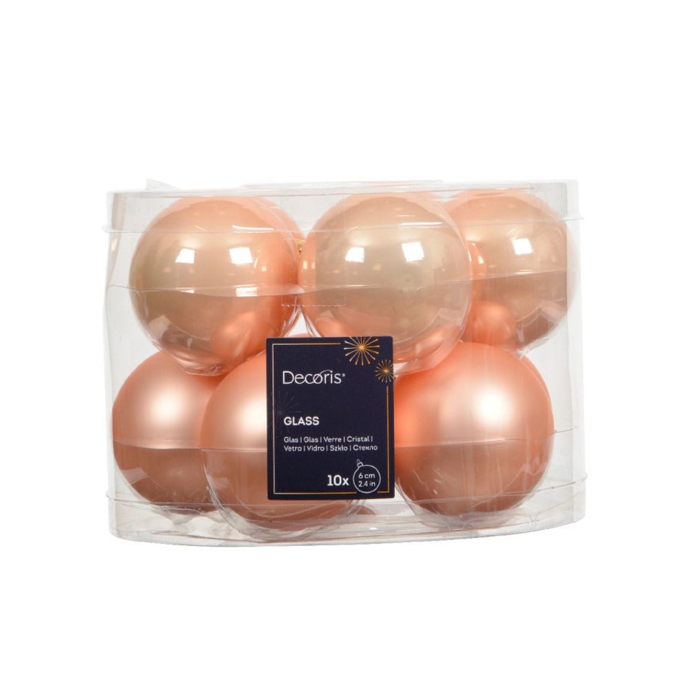 Vneste do své vánoční výzdoby jemnost a eleganci s touto sadou skleněných ozdob v broskvovém odstínu. Kombinace lesklého a matného povrchu dodává dekoracím příjemný kontrast a jemný třpyt, který se krásně odráží ve světle svíček nebo vánočního osvětlení.