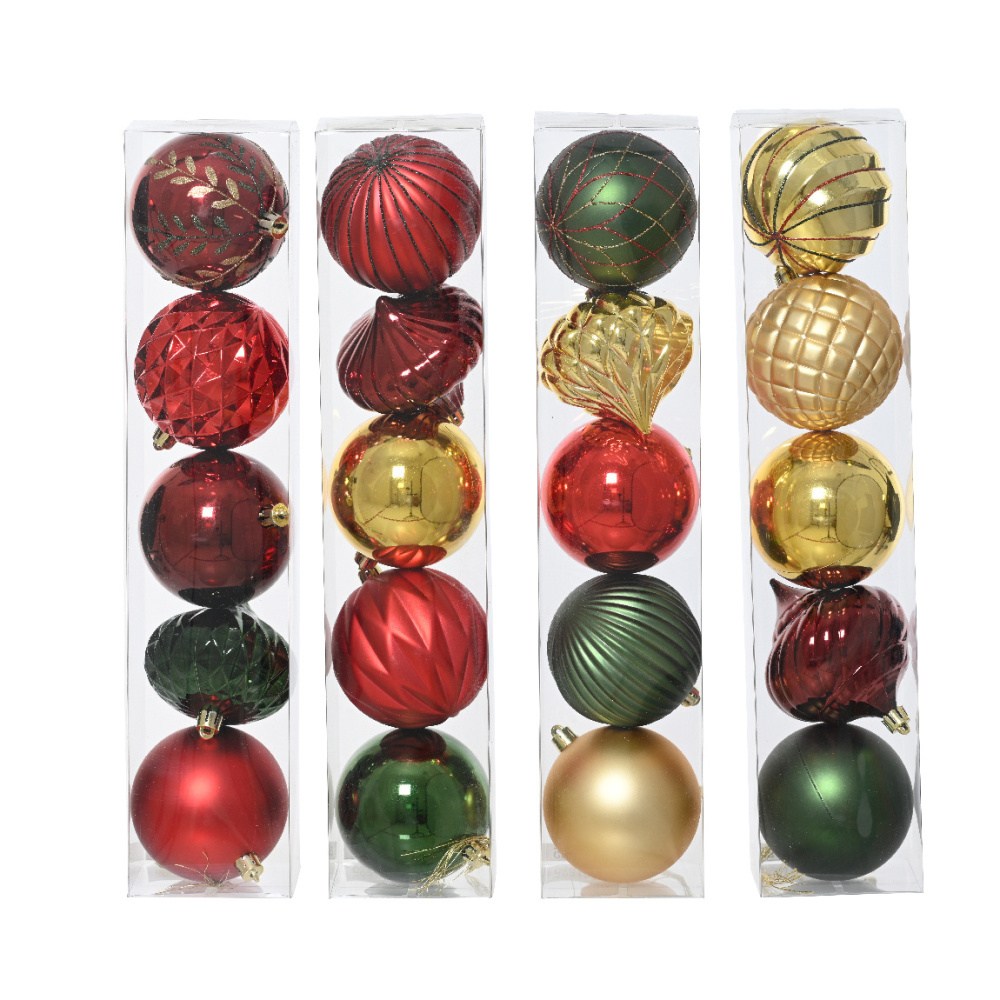 Sada ozdob v mixu provedení. Pokud si přejete konkrétní variantu, napište ji do poznámky, pokusíme se vyhovět. V případě nedostupnosti bude odeslán náhodný kus.Ozdoba plastová koule/cibule, lesklá/matná/glitry (červená,zlatá,zelená) mix 5ks