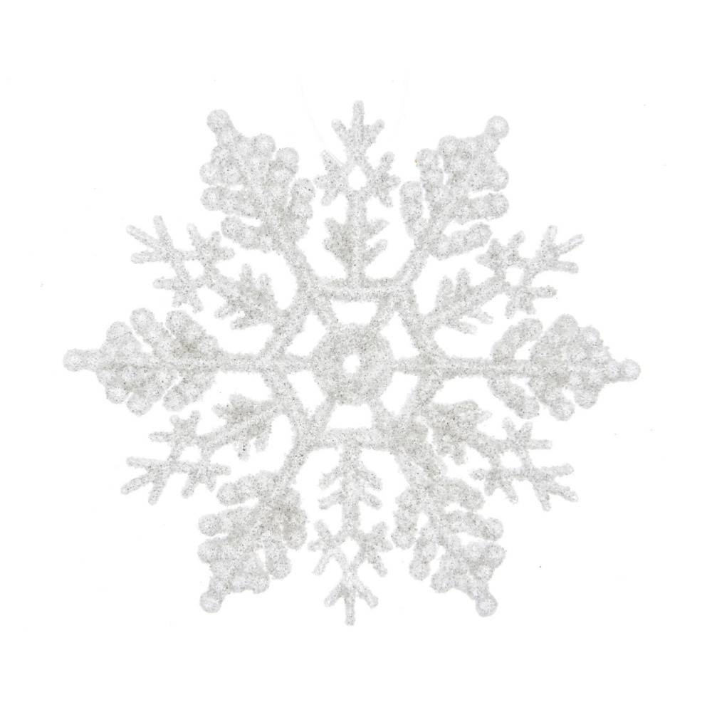 Vneste do své vánoční výzdoby třpytivou zimní atmosféru s touto sadou plastových vloček ve sněhově bílé barvě s glitry. Lehký materiál a jemné provedení z nich dělají ideální ozdoby na stromeček, do oken, girland i svátečních aranžmá.