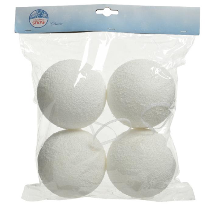 Tato sada čtyř lehkých pěnových koulí v bílé barvě s efektem sněhu vnese do vašeho domova klidnou zimní atmosféru. Koule jsou určené k zavěšení, a tak je snadno využijete na vánočním stromku, v přírodních věncích nebo jako součást svátečních aranžmá. Jednoduchá, ale působivá dekorace.