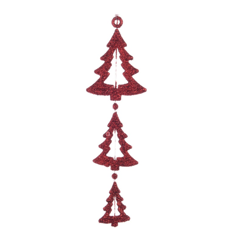 Ozdoba plastová hvězdy nebo stromy děrovaná s glitry 18cm červená