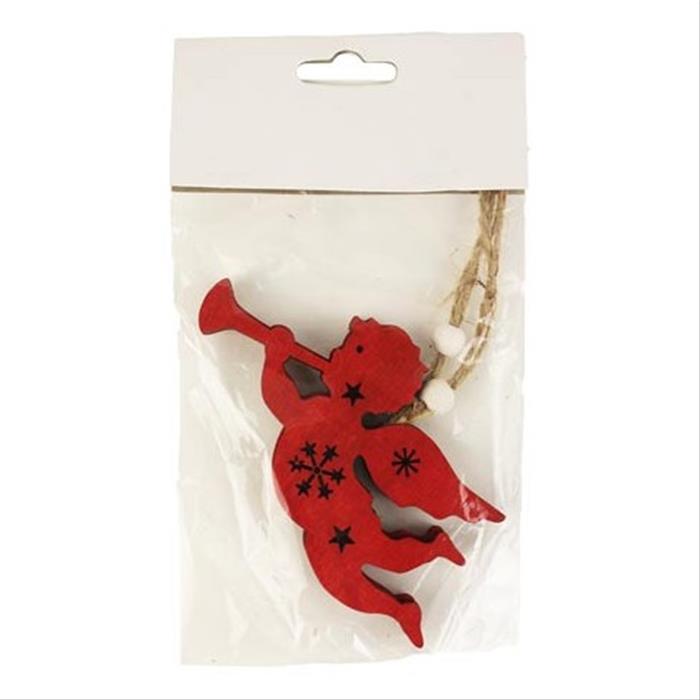 Ozdoba anděl s trubkou dřevěný 9,5cm 2ks červená