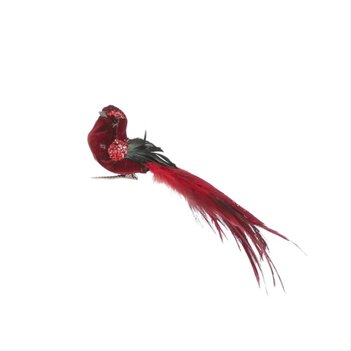 Popis produktu Pták na klipu pěnový s peřím červený 18cm