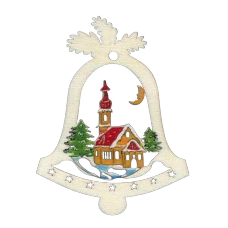 Ozdoba zvonek s kostelem dřevěný 9cm