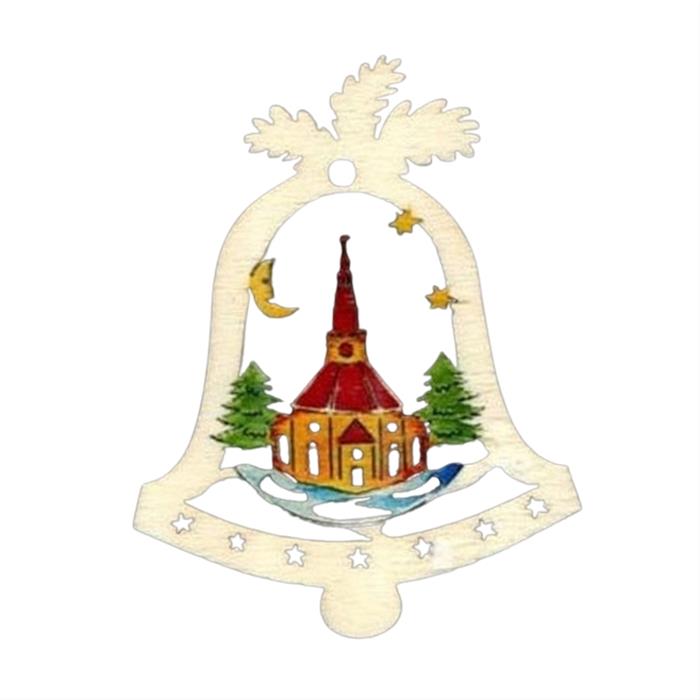 Ozdoba zvonek s kostelem dřevěná 6cm