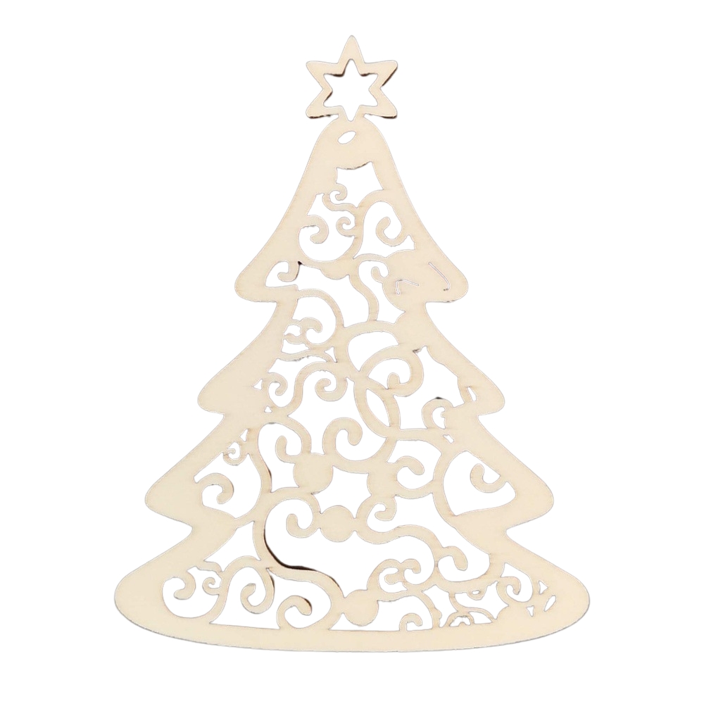 Elegantní dřevěná ozdoba ve tvaru vánočního stromku s hvězdou a jemnými ornamenty. Vyrobena ze dřeva, které dodá vašemu interiéru teplý a útulný vzhled. Ideální k zavěšení na vánoční stromek, do oken nebo jako součást sváteční výzdoby.