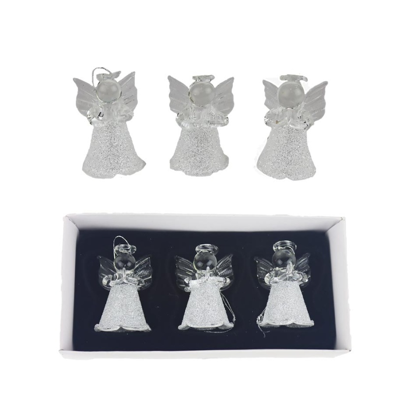 Přineste do svého domova slavnostní a něžnou atmosféru s touto sadou tří čirých skleněných andělů. Minimalistický design, průhledné provedení a jemné detaily z něj činí univerzální dekoraci vhodnou jak pro vánoční výzdobu, tak pro celoroční stylizaci interiéru