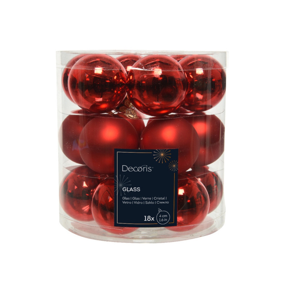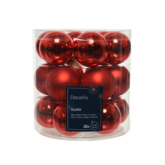 Sada skleněných ozdob červená 4cm/18ks