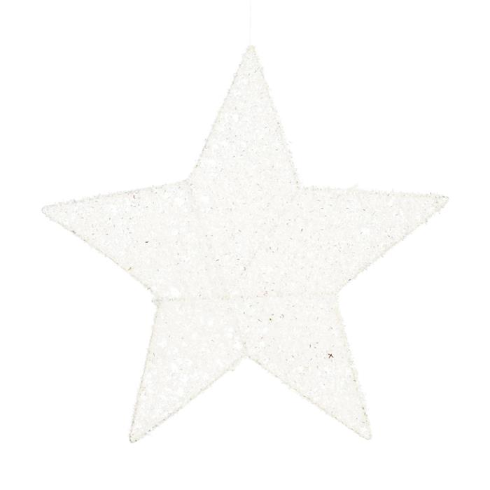 Tato velká bílá závěsná hvězda o průměru 40 cm je pokrytá třpytivými flitry, které zachytí a odrážejí světlo, čímž vytváří okouzlující efekt. Skvělá volba pro výraznou a elegantní vánoční dekoraci, která rozzáří váš stromek, okno nebo jakékoliv jiné místo v interiéru.