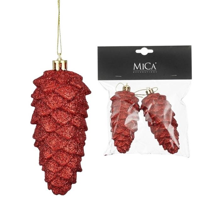 Ozdoba polystyrenová šiška červená s glitry 2ks